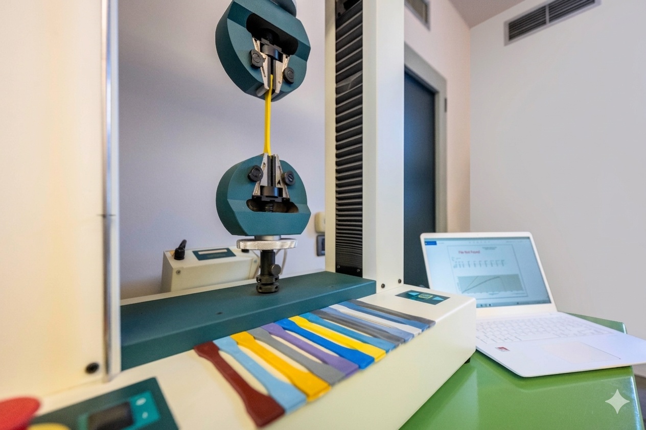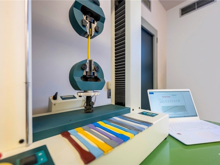 laboratorio interno ci consente di effettuare rigorosi controlli sulla materia prima e di testare resistenza, elasticità e qualità del prodotto finale, al fine di sviluppare polimeri su misura e all’altezza delle aspettative.